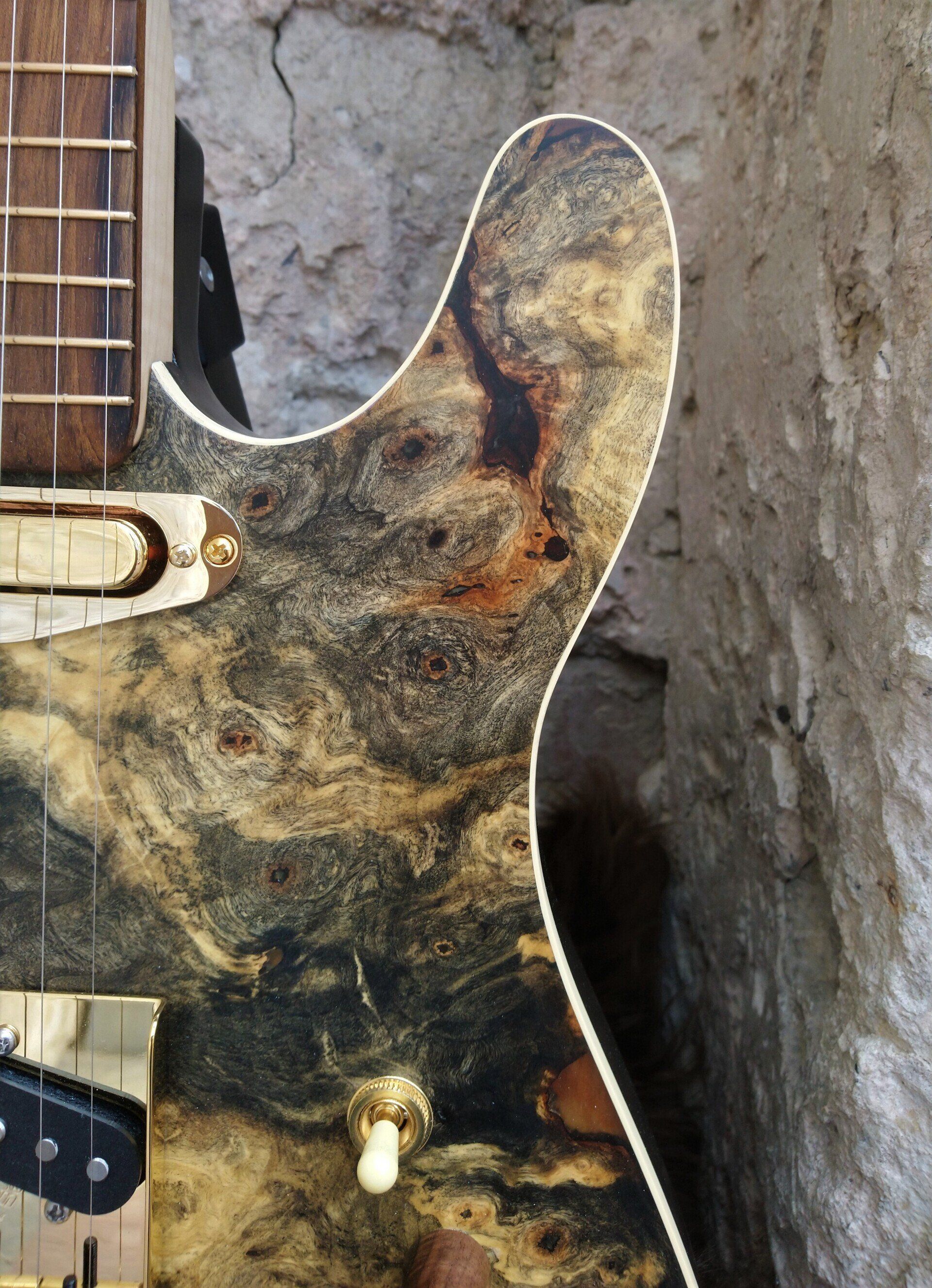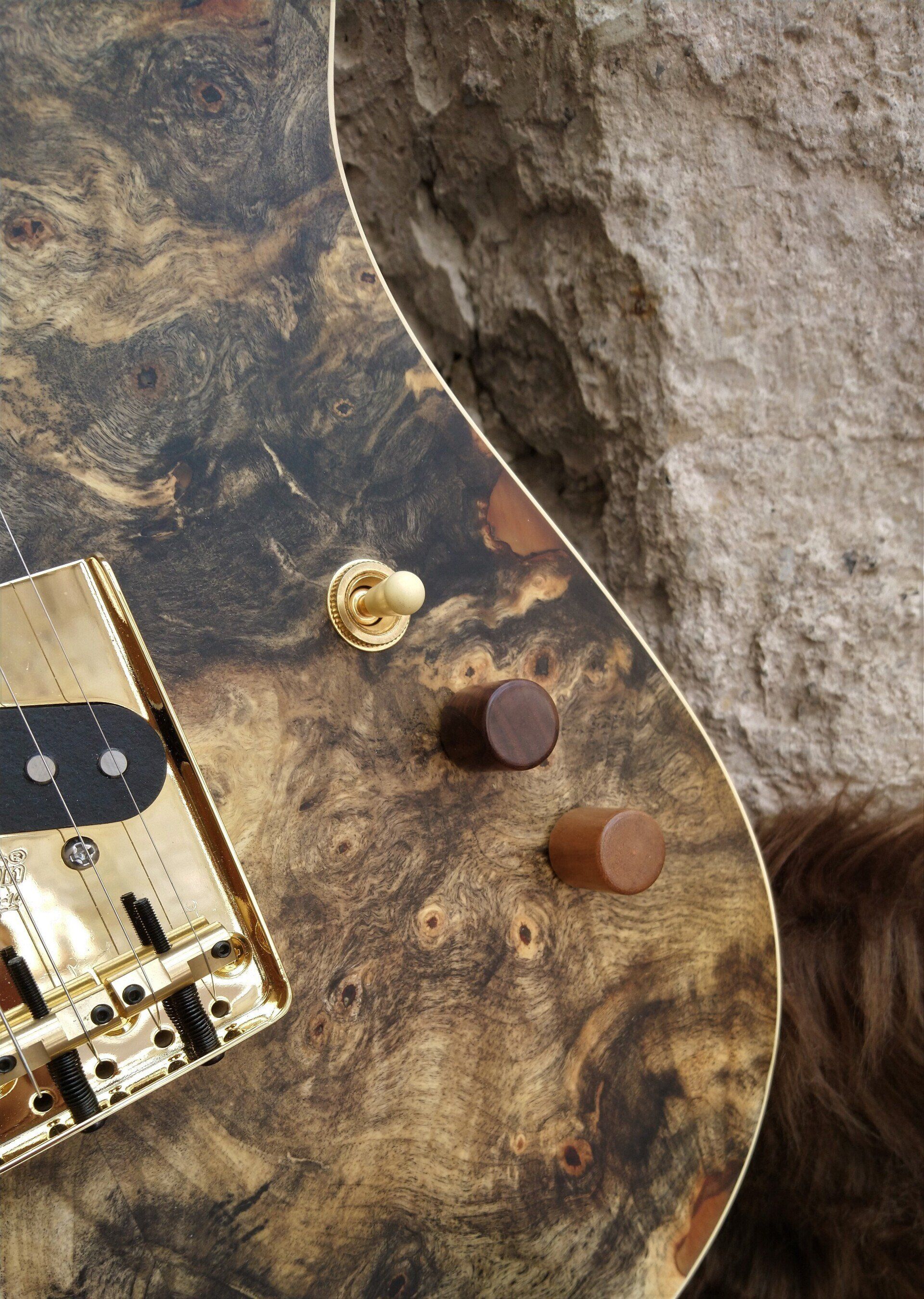 El cuerpo está hecho de aliso rojo con una parte superior de castaño de indias, los accesorios de color dorado le dan ese aspecto extra lujoso.